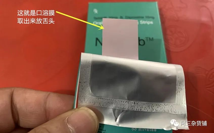 与以往相同,事先安排好M后,取出一片绿膜。撕开包装后,直接将膜片放置在舌头上。由于绿膜的起效时间更快,提前一小时左右就将膜片放入口中。不到一分钟的时间,膜片就完全融化消失。在膜片完全融化后,三哥感觉口中有一丝甜味,随后喝了一些水,猜测水的摄入可能不会影响产品的效果。